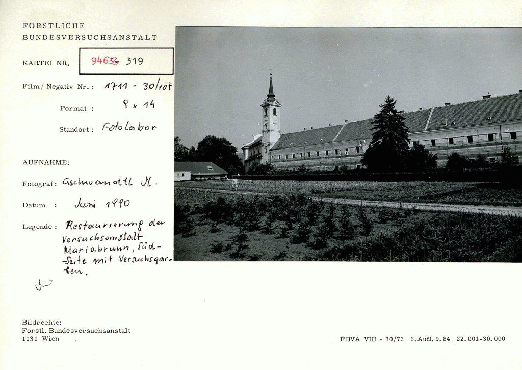 - TitelRestaurierung der Versuchsanstalt Mariabrunn, Südseite mit Versuchsgarten