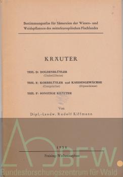 - TitelIllustriertes Bestimmungsbuch für Wiesen- und Weidepflanzen des mitteleuropäischen Flachlandes : Kräuter: Teil D: Dpldenblütler (Umbelliferae) ; Teil E : Korbblüter (Compósitae) und Kardengewächse (Dipsacáceae) ; F : Sonstige Kräuter