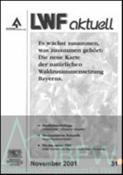 - TitelEs wächst zusammen was zusammen gehört: Die neue Karteder natürlichen Waldzusammensetzung Bayerns : Walddohlen-Umfrage: "Unbekannte" schwarze Gesellen : Nachwachsende Rohstoffe: Neue Förderrichtlinien : Pilz des Jahres 2002: Unter Eichen und Buchen muss man ihn suchen