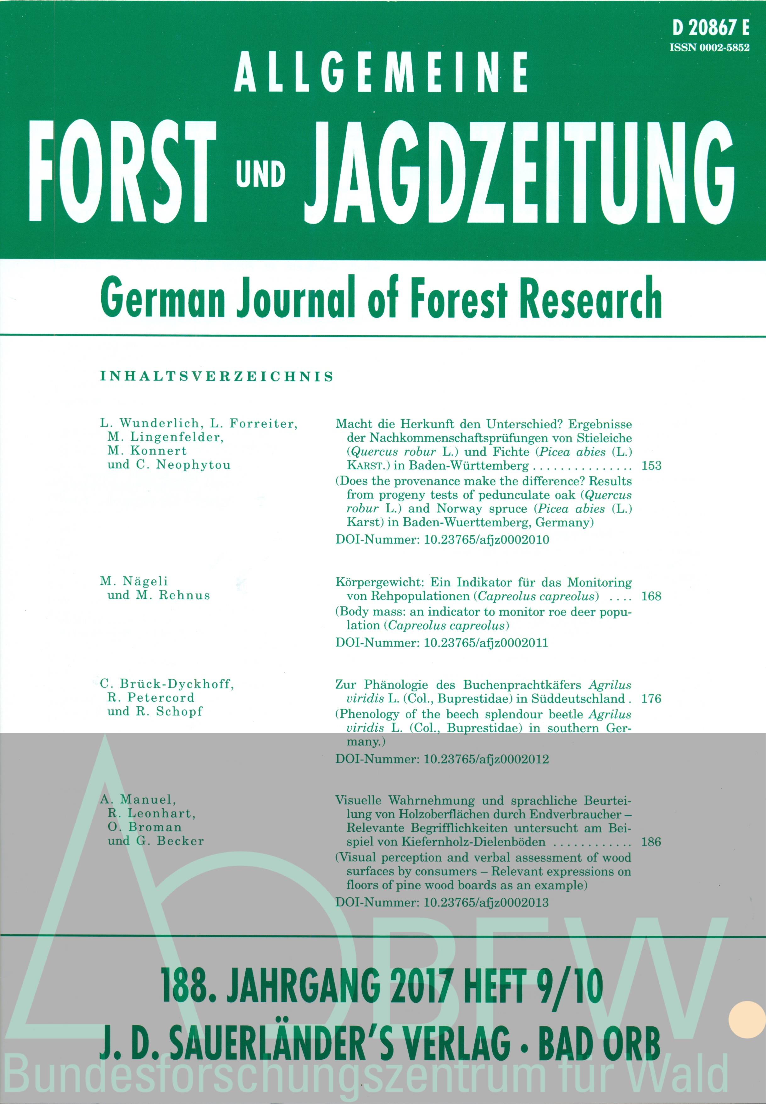 - TitelAllgemeine Forst- und Jagdzeitung 2017, 188(9/10)