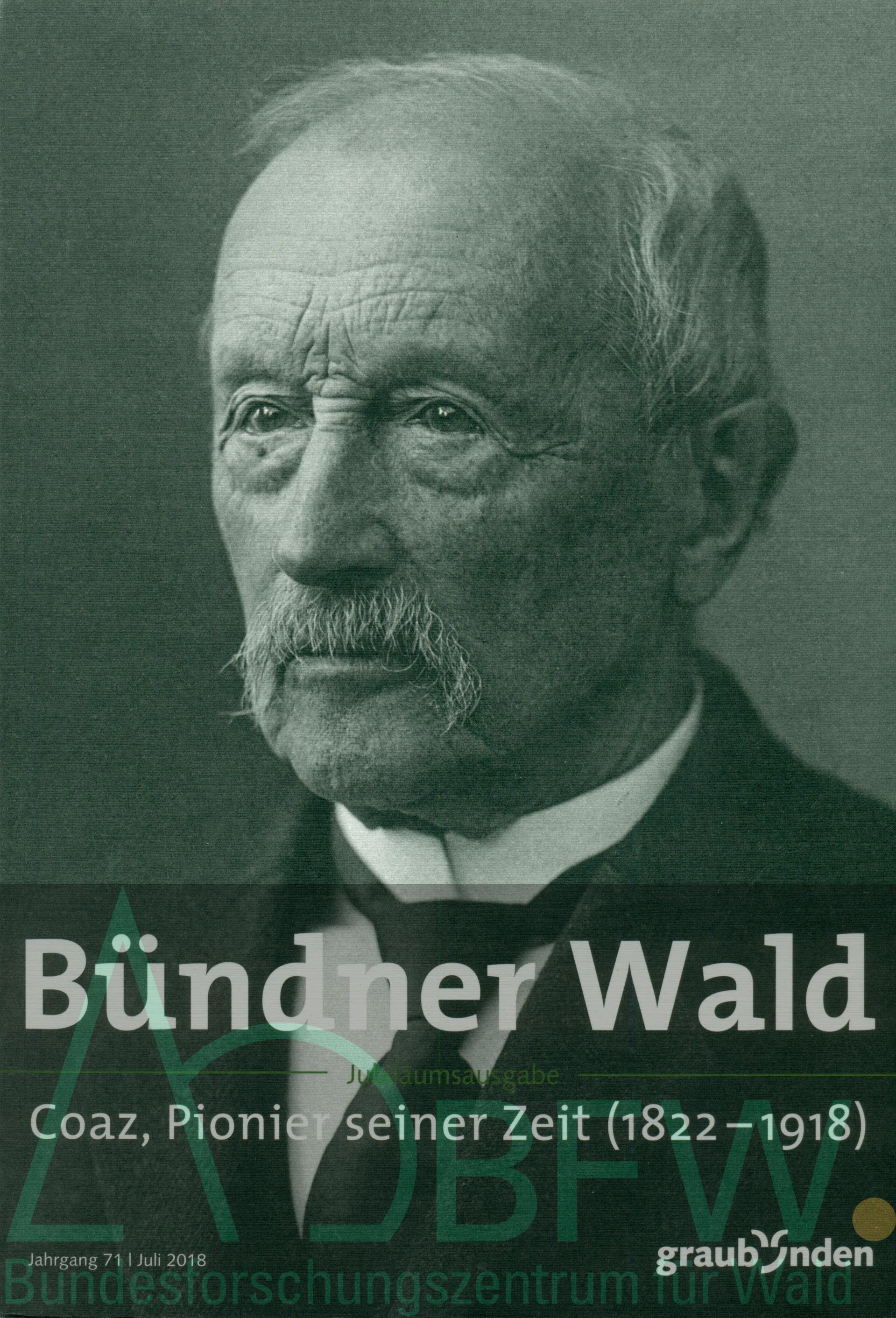 Der "Bündner Wald" widmet Dr. Johann Wilhelm Fortunat Coaz eine Sonderausgabe zu seinem Todestag, der sich zum 100. Mal jährt. Coaz legte manchen Grundstein der moedernen Forstwirtschaft. Er führte die ersten Ausbildungskurse für Forstleute durch, organisierte den Bündner Forstdient und prägte später als erster eidgenössischer Oberforstinspektor die nachhaltige Entwicklung der Schweizer Wälder. Die forstliche Gesetzgebung und deren Umsetzung im 19. Jahrhundert trägt seine Handschrift und ist die Grundlage der umfassenden Wiederbewaldung. Sein interdisziplinäres und sachliches Wirken fürhte zu weiteren Pionierleistungen, von Erstbesteigungen, der Gletschervermessung, der Lawinenprävention über die Botanik bis zur Wiederbesiedlung verschiedener Art, die heute nicht mehr wegzudenken sind. Er konkretisierte den jungen Weltnaturschutzgedanken und lobbyierte still, aber effektiv für den Nationalpark. Sein Wesen war unscheinbar, aber sein Handeln hinterliess Spuren, die heute noch sichtbar sind.