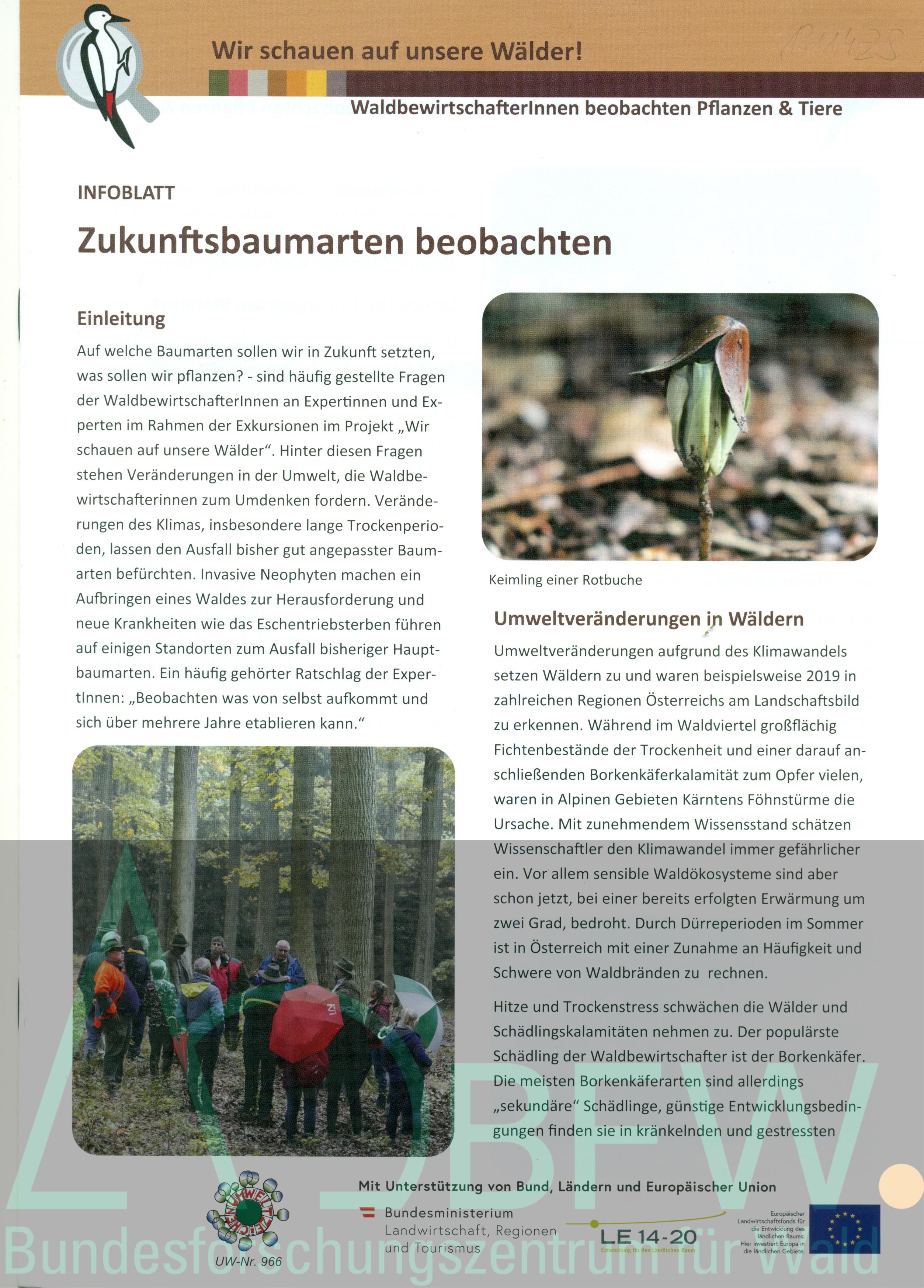 Auf welche Baumarten sollen wir in Zukunft setzen, was sollen wir pflanzen? - sind häufig gestellte Fragen der WaldbewirtschafterInnen an Expertinnen und Experten im Rahmen der Exkursionen im Projekt "Wir schauen auf unsere Wälder!. Hinter diesen Fragen stehen Veränderungen in der Umwelt, die Waldbewirtschafterinnen zum Umdenken fodern. Veränderungen des Klimas, insbesondere lange Trockenperioden, lassen den Ausfall bisher gut angepasster Baumarten befürchten.