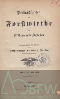 - GeschichteFortsetzung: Nachgewiesen 1850 - 1869; später auch mit durchgehender Heft-ZählungSpäterer Titel: Verhandlungen der Forstwirthe von Mähren und Schlesien