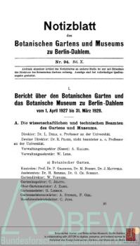 - Geschichte[Erscheinungsverlauf: 1.1895/97 - 14.1938/39 = Nr. 1-125; 15.1940/44,1-7] Früherer Titel: Notizblatt des Königlichen Botanischen Gartens und Museums zu Berlin; Früherer Titel: Notizblatt des Königlichen Botanischen Gartens und Museums zu Berlin-Dahlem, sowie der Botanischen Zentralstelle für die Deutschen Kolonien