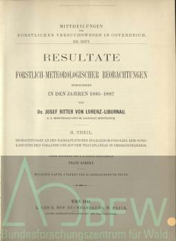 - TitelResultate forstlich meteorologischer Beobachtungen insbesondere in den Jahren 1885-1887 : II. Theil: Beobachtungen an den Radialstationen in Galizisch-Podolien, dem nordkarpatischen Vorlande und auf dem Thayaplateau in Niederösterreich
