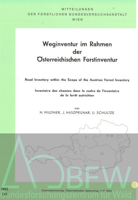 Standardsignatur Titel Weginventur im Rahmen der Österreichischen Forstinventur Verfasser Erscheinungsort Wien Verlag Erscheinungsjahr 1982 Seiten 114 S. Illustrationen 23 Abb., 3 Anh., 7 Lit. Ang. Material Bandaufführung Digitales Dokument Datensatznummer 4882 Quelle
