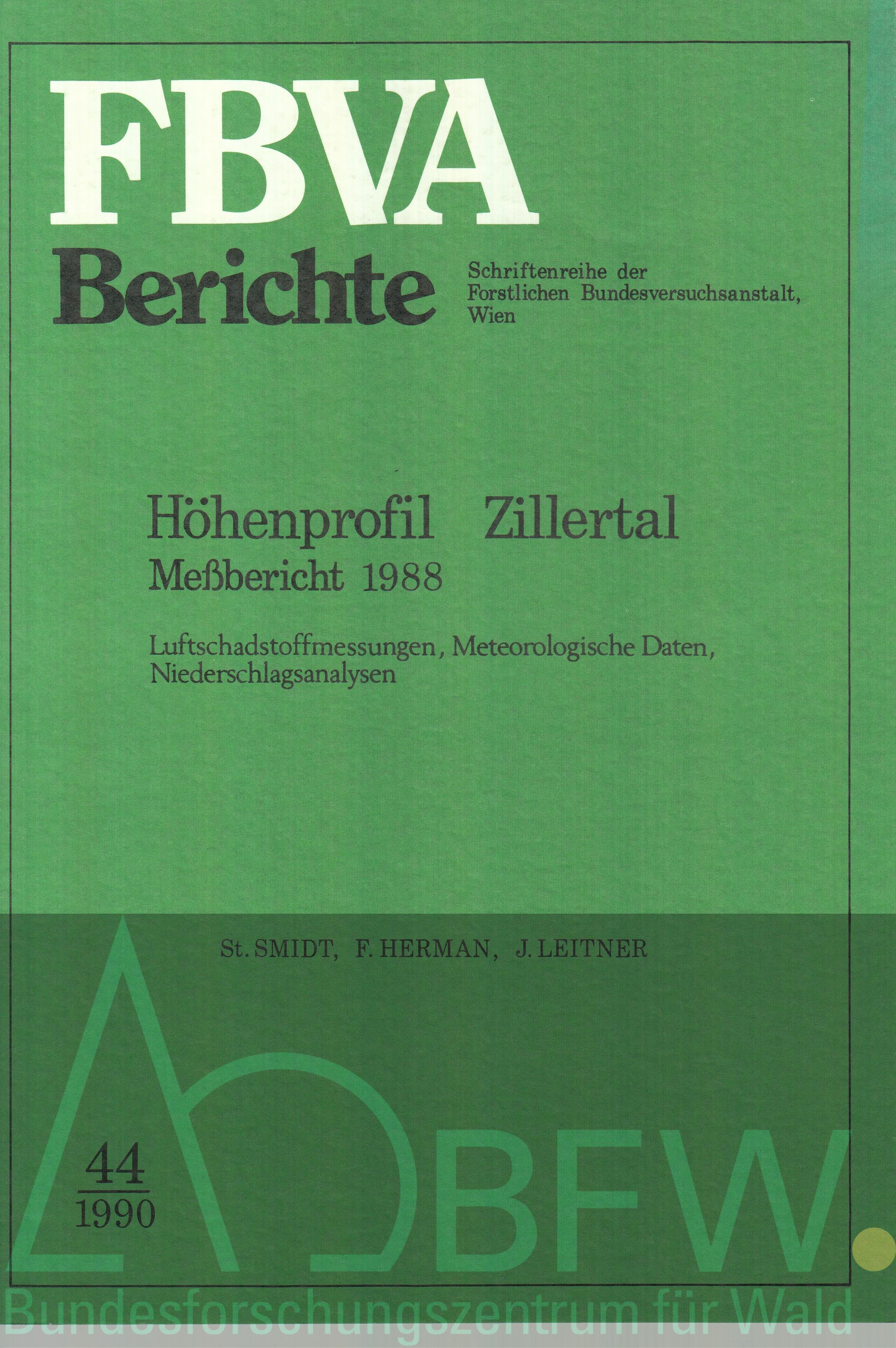 Die Luftmessungen ergaben 1988 nur geringe SO2-, NO- und NO2- Konzentrationen. Ueberschreitungen der SO2-Grenzwerte der 2. Verordnung gegen forstschaedliche Luftverunreinigungen wurden nicht registriert; Ueberschreitungen der NO2-Hoechstwerte der Akademie der Wissenschaften traten nur an der Talstation auf (10 x wurde der Tagesmittel-Grenzwert von 0,08 mg/m3 in den Monaten Januar bzw. Februar ueberschritten, am 15. und 16. Februar auch der Halbstundenmittel-Grenzwert). Hinsichtlich Ozon ergaben sich 1988 an allen Messtellen (besonders an den Bergstationen) Ueberschreitungen der Hoechstwerte der Akademie der Wissenschaften, der Grrenzwert der Schweizerischen Luftreinhalteverordnung und der maximalen Immissionskonzentrationen fuer sehr empfindliche Baumarten (zu denen z.B. die Laerche gezaehlt wird) der VDI-Richtlinie 2310. Waehrend also hinsichtlich SO2 und NO/NO2 nur an der Talstation fallweise Graenzwertueberschreitungen auftraten, waren solche bei Ozon im wesentlichen an den Bergstationen festzustellen. Die Niederschlagsanalysen zeigten 1988 in Analogie zu den vorangegangenen Jahren mit Ausnahme der Wasserstoffionen eine Abnahme der mittleren gewichteteen Ionenkonzentrationen mit zunehmender Seehoehe. Die Wasserstoffeintraege nahmen mit steigender Seehoehe zu. Die Schwefeleintraege waren an der Station Ramsau (600 m), und die Stickstoffeintraege an der Probeflaeche 1 (1720 m) am hoechsten. Beim Vergleich der Messjahre faellt besonders der relativ hohe H-Eintrag und eine stetige Zunahme des N-Eintrages von 1985 bis 1988 an der Probeflaeche 1 (1720 m) auf; der relativ hohe N-Eintrag an dieser Messtelle ist z.T. dadurch zu erklaeren, dass 1988 sehr lange eine andauernde Schneedecke vorhanden war und Einwehungen zu einer fehlerhaften Niederschlagshoehe gefuehrt haben duerften. Im Vergleich zu 1987 waren 1988 an den Messtellen Talwiese (1000 m) und Ramsau (600 m) keine bzw. nur geringe Zunahmen der H-, S- und N-Eintraege festzustellen.